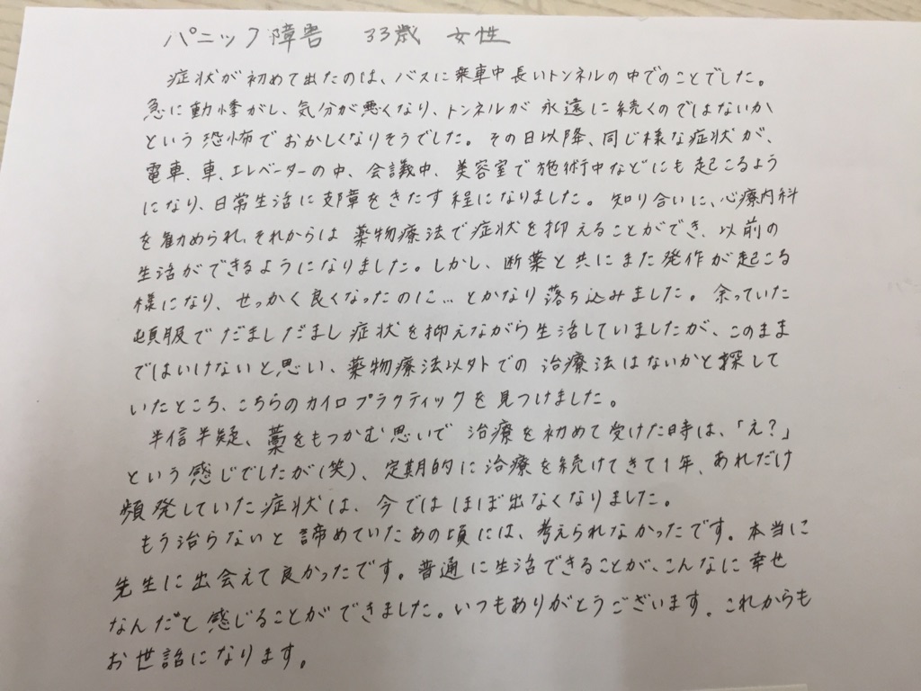 パニック障害も自律神経失調症も大阪西区カイロではお薬なしで元気に